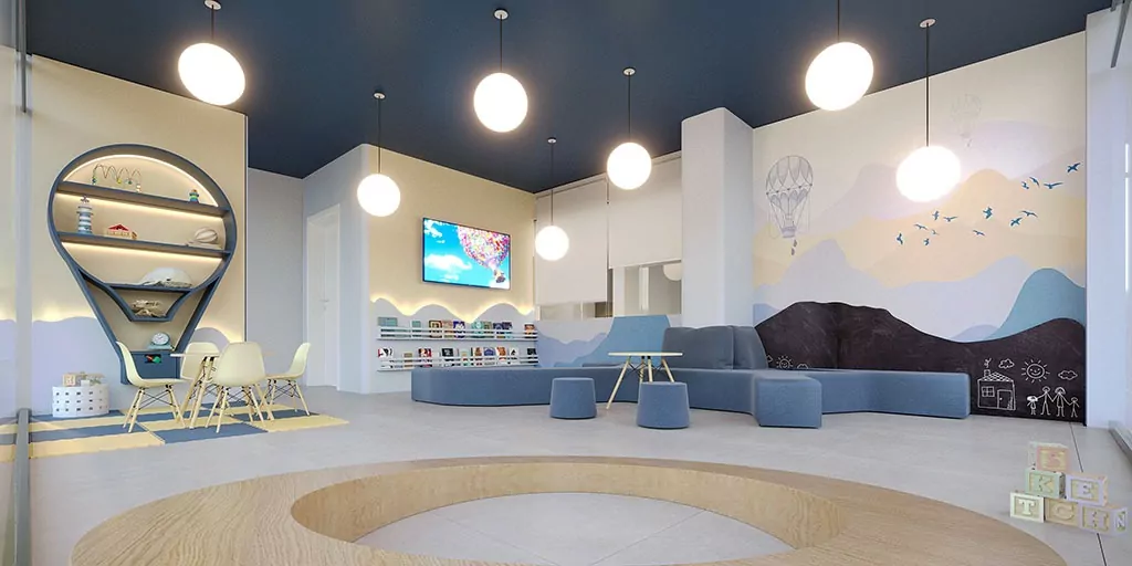 Geralmente, esse é um ambiente equipado com brinquedos educativos, jogos interativos e áreas para atividades em grupo.